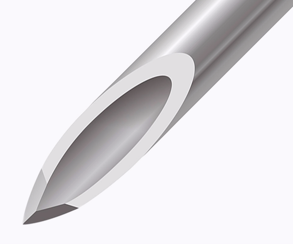 針尖采用(yòng)多(duō)斜面設計,先進工(gōng)藝打磨,邊緣平滑,針尖鋒利;高品質(zhì)的的潤滑劑可(kě)以減少穿刺所造成的阻力,降低對皮膚的損傷和痛感。